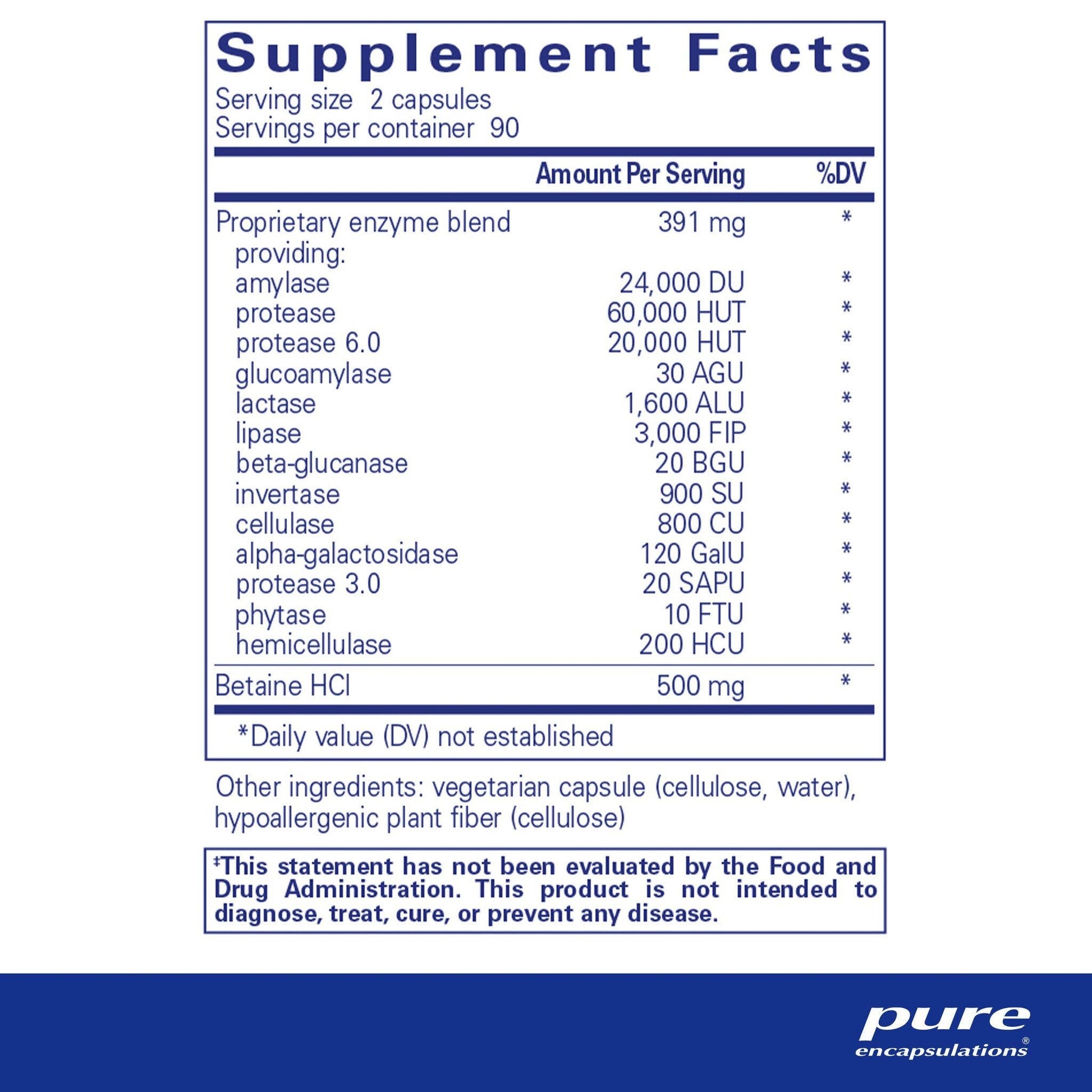 High-strength mixture of betaine HCl with vegetarian enzymes to support enhanced protein, carbohydrate, fat, fiber and dairy digestion