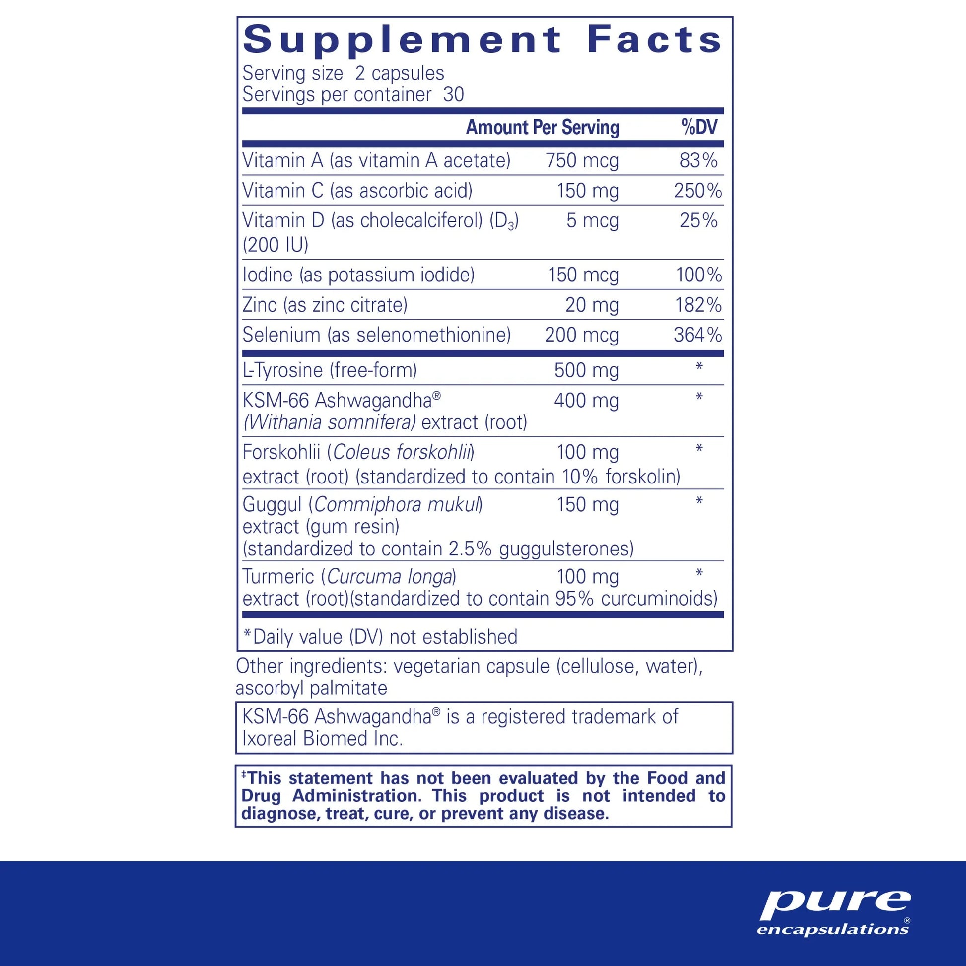 Comprehensive formula containing vitamins, minerals and herbal extracts to support healthy thyroid cell metabolism and thyroid hormone function‡